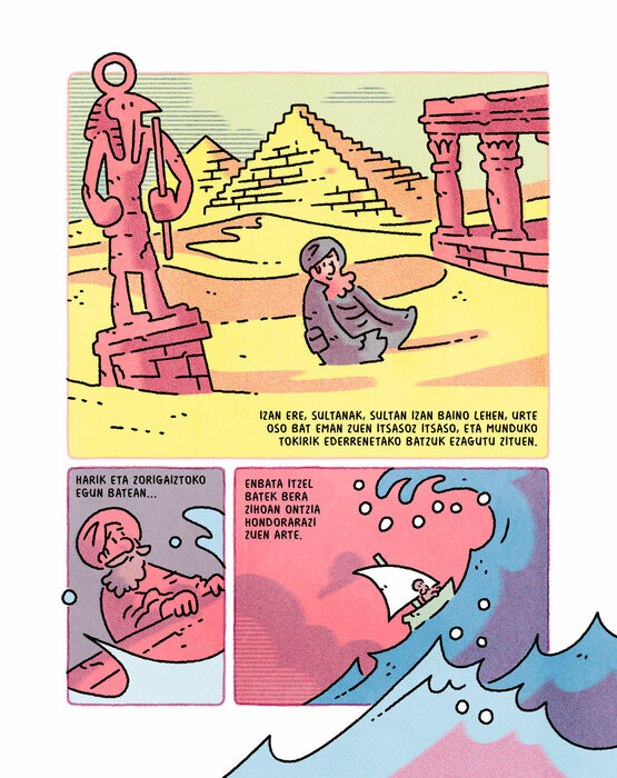 Álvaro Ortizek zinez baliatu ditu bere kontalari dohainak irakurle gazteenen mesedetan, eta mitologia klasikoaren kutsua duen abentura guztiz modernoa sortu du. Elkarrizketa arinek, nonahi azaltzen den umoreak eta marrazki dinamikoek osatzen dute Aragoiko egileak asmaturiko kontakizuna, eta haren eskutik barneratuko gara basamortuan eta urruneko jauregietan, Ayuren abenturen arrastoan. Gehiago etorriko ahal dira!