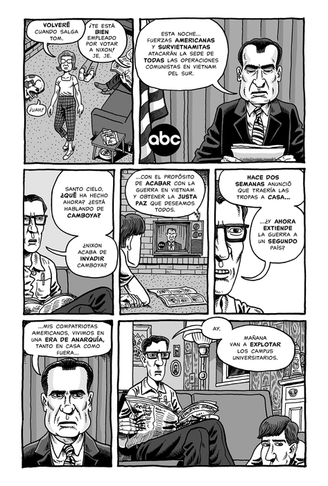Utilizando los recursos periodísticos que aplicó en Mi amigo Dahmer y Basura, ambos publicados en Astiberri, Backderf ha realizado amplias entrevistas y se ha documentado a fondo para explorar las vidas de aquellos cuatro jóvenes y los acontecimientos de aquellos cuatro días de mayo, cuando el país parecía estar a punto de hacerse pedazos. Tan actual hoy como lo fue en 1970, Kent State, ganadora en 2021 del premio Eisner al mejor libro basado en hechos reales, es una historia conmovedora y perturbadora sobre el amargo coste de la disidencia.