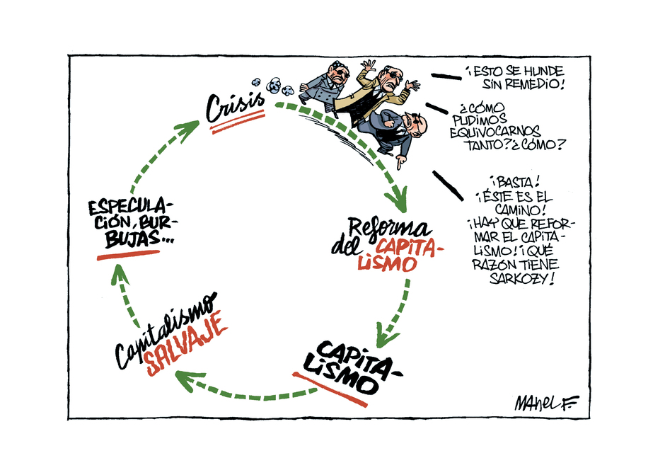 A través de las viñetas realizadas cotidianamente para el diario Público desde el comienzo de la crisis, Manel Fontdevila disecciona con humor y precisión de cirujano las causas de la actual situación económica y nos explica por qué y para quién está siendo un éxito.