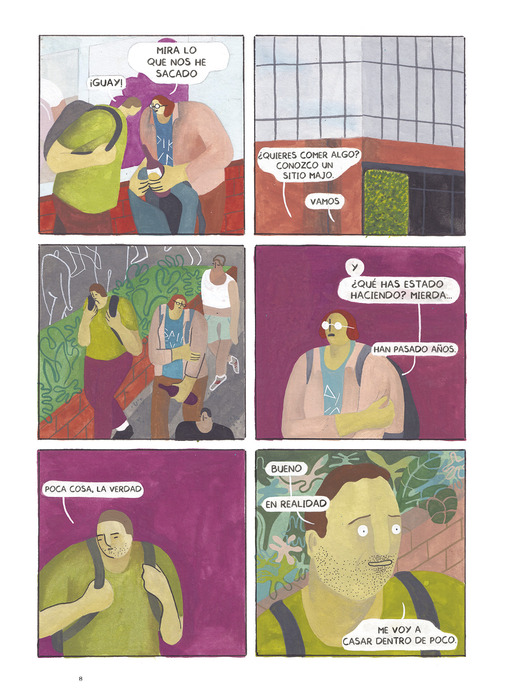 Con una paleta de colores muy potente e interludios en un preciso blanco y negro, Tommi Parrish aborda en su primera novela gráfica el miedo a enfrentarse a uno mismo y a sostener la mirada ante el espejo, la ambigüedad del género, lo queer y los conflictos de identidad sexual, así como el desvanecimiento de las amistades del pasado.