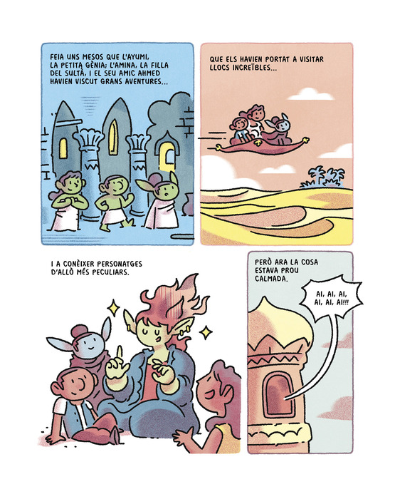 Una visitant misteriosa arribada de l’Orient encara més llunyà apareix un dia al palau del sultà, on l’Ayu, la petita gènia, es va quedar a viure. Ha vingut expressament a buscar-la, ja que ella és l’últim membre viu d’una família autòctona que generacions enrere va forjar una espasa molt especial, una espasa ancestral i màgica. La viatgera li demana ajuda perquè la seva vall està amenaçada per l’arribada d’un monstre i l’Ayu, per la seva ascendència, és l’única possibilitat de salvació que tenen. La petita gènia no s’ho rumia gaire i s’embarca intrigada en aquest viatge als seus orígens.