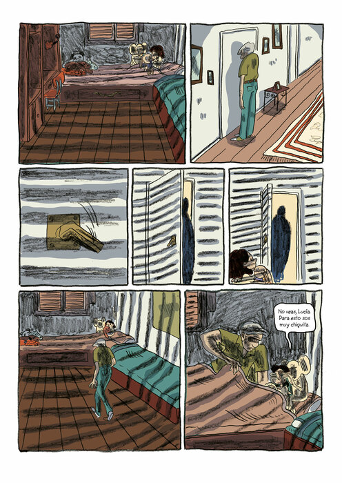 Detrás de la puerta, debajo de la mesa, en el baño... Lucía siempre busca escondites en casa. Para escapar, también le sirven peluches que hablan, ratones antropomórficos imaginarios o bidés celestiales que lo saben todo... Pero la sombra de la cucaracha acecha por todas partes.