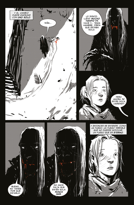 Romie. Yui. Lucas. Ronnie y Raymond. Billy. Bats. Vickie. Estos son los niños. Y desde hace más tiempo del que recuerdan, han estado solos. Son los últimos niños del mundo y también son vampiros, sumidos en una infancia eterna entre las ruinas de la humanidad. Pero resulta que al final no estaban solos y este descubrimiento lo transforma todo. El cambio llega de noche y aunque puede empezar con uno solo, se extiende como un fuego terrible. Es un acontecimiento tan perturbador que termina dividiendo al grupo y lanzándolo a un camino de descubrimiento que destruirá su inocencia para siempre.