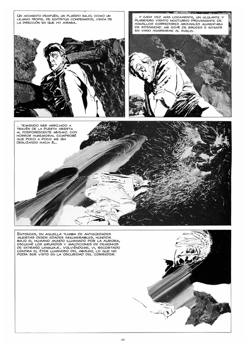 Alberto Breccia aseguraba haberse dado cuenta muy pronto “de que el lenguaje tradicional de cómic no podía representar satisfactoriamente el universo de Lovecraft, de manera que empecé a experimentar con nuevas técnicas, como el monotipo o el collage” destacando que “estos monstruos informes, semejantes a los que había dibujado en El Eternauta, están hechos así porque no quería ofrecer al lector únicamente mi propia visión: también quería que cada lector añadiese algo suyo, que utilizara la base que yo le proporcionaba para vestirla de sus propios temores, de su propio miedo”.