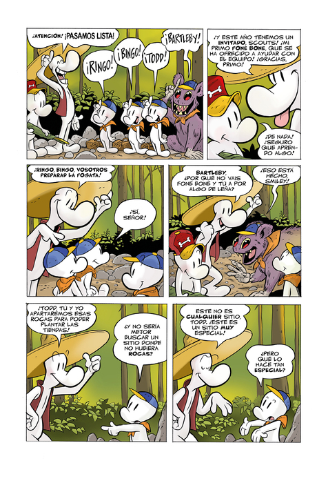 La galardonada saga de Jeff Smith regresa con esta divertida continuación de Estúpidas, estúpidas mostrorratas en la que Smiley Bone, Fone Bone y Bartleby, su amigo mostrorrata, llevan a un grupo de jóvenes exploradores a un lugar legendario que los primos Bone encontraron cuando eran niños. Alrededor de una hoguera, comparten historias sobre viajes a la luna, las delicias de la quiche, un monstruo imaginario que cobra vida y un encuentro con dos estúpidas mostrorratas que sale muy mal.