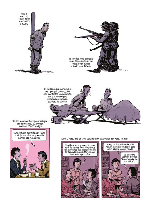 Matadero Cinco, primera adaptación al cómic de la novela original de Kurt Vonnegut, dibujada por Albert Monteys, es a la vez una mirada mordaz al horror y la tragedia de la guerra, donde los niños son enviados al frente y mueren (así fue y será), y un conmovedor examen de lo que significa ser un humano falible. Publicada por primera vez en 1969 en plena guerra de Vietnam, el potente mensaje antibelicista de la novela, el humor negro y absurdo y las agudas observaciones de la naturaleza humana conservan toda su vigencia.