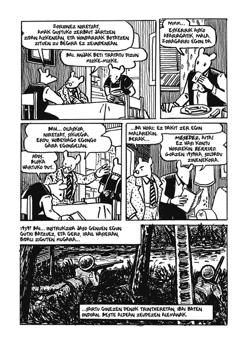 Holokaustoari buruz aritzeko erabili izan diren ohiko moduetatik urrunduta, Art Spiegelman guztiz era berritzailean hurbiltzen da aipatutako gaira, eta, horretarako, bere familiaren esperientzia kontatzen du, memoir grafikoaren forman, generoaren baliabide estilistiko eta narratibo tradizional guztiak erabiliz eta, aldi berean, baliabide berriak ere asmatuz. Lan honen erradikaltasun narratiboak mugarria ezarri zuen nobela grafikoaren unibertsoan, eta, ondorioz, Pulitzer saria lortu zuen: komiki bati emandako aurrenekoa eta bakarra.