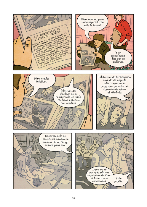 Rutu Modan, una de las pocas ###representantes del cómic israelí, construye una narración casi policiaca, en la que convive una historia de amor naciente junto con una silenciosa y demoledora crítica a la sociedad israelí, acostumbrada y resignada a la violencia cotidiana, una sociedad magullada por uno de los enfrentamientos más complejos de la actualidad.
