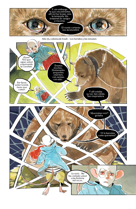Emma Ríos (Bella Muerte, I.D.) y Hwei Lim (Hero) presentan Mirror. El reflejo de la montaña, primera entrega de su serie sobre los alquimistas de la Sincronía y los animales conscientes de la colonia de Irzah, que explora el concepto de humanidad. Parcialmente inspirada en Oda a Kirihito, de Osamu Tezuka, y La isla del Dr. Moreau, de H. G. Wells, Mirror es una historia sobre la identidad, la aceptación y la libertad de elegir.