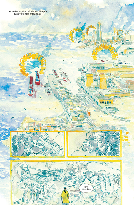 “Un original diseño de página y un atrevido sentido del montaje acompañan a un dibujo elegante, de trazo ágil y colores suaves, capaz de describir seres y conceptos fabulosos con un tono naturalista.”