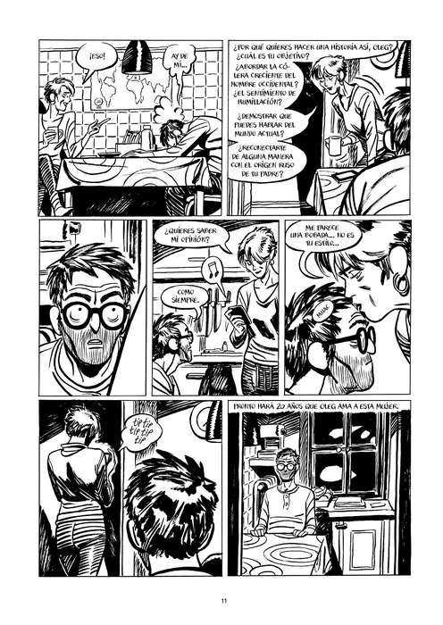 Oleg es autor de historietas. Durante más de veinte años, su vida cotidiana ha girado en torno al dibujo y a la narración de historias. Y todo esto fluye con naturalidad, hasta estos últimos días, en los que la creación parece patinar, en los que los proyectos se suceden pero la convicción parece faltar, como si en algún lugar “se hubiera perdido el impulso”. Así que Oleg indaga, busca y reflexiona. Alrededor de Oleg está el mundo, grande, amplio, rápido, cambiante, moderno, desestabilizador, inexorable. Ermitaño seguro de sí mismo pero atento observador, Oleg es el testigo involuntario de este mundo en perpetuo cambio, un mundo que aporta su cuota de acontecimientos y sorpresas, tanto buenas como malas. Y sobre todo, está su pequeño mundo: la mujer cuya vida comparte desde hace dos décadas, y la hija de ambos, en plena adolescencia.