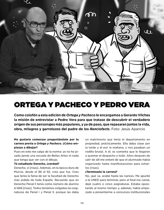 El cuarto volumen de Ortega y Pacheco Deluxe incluye las últimas páginas de la serie publicadas originalmente en El Jueves y no recopiladas hasta la fecha en libro, junto con más de 60 páginas con ilustraciones, bocetos, curiosidades y una extensa entrevista realizada por Gerardo Vilches a Pedro Vera en la que repasan la carrera del creador de Ortega y Pacheco y Ranciofacts.