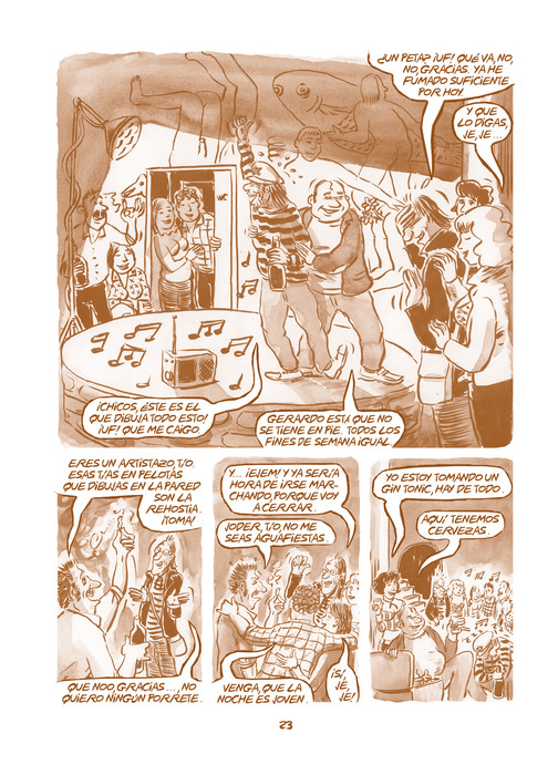 Ramón Boldú insiste en hacer reír al personal con el peculiar relato de su vida. Se va hasta otoño de 2003 para contar en Perdidos por el más allá el inicio de una nueva relación en serio, la tercera después de sus dos primeros divorcios. Boldú se involucra, en este primer tomo de una tetralogía, en la gestación de un club de intercambios y lo decora pintando su particular versión de El jardín de las delicias, del Bosco. La directora del garito va a ser Ana Flash, amante del director de orquesta propietario del club, una joven a la que le han metido en la cabeza que está poseída por Eva Perón y que tiene poderes; todo gracias a los experimentos a los que está siendo sometida por un investigador de la NASA, colaborador de Jiménez del Oso y amigo del dibujante... Boldú en estado puro.