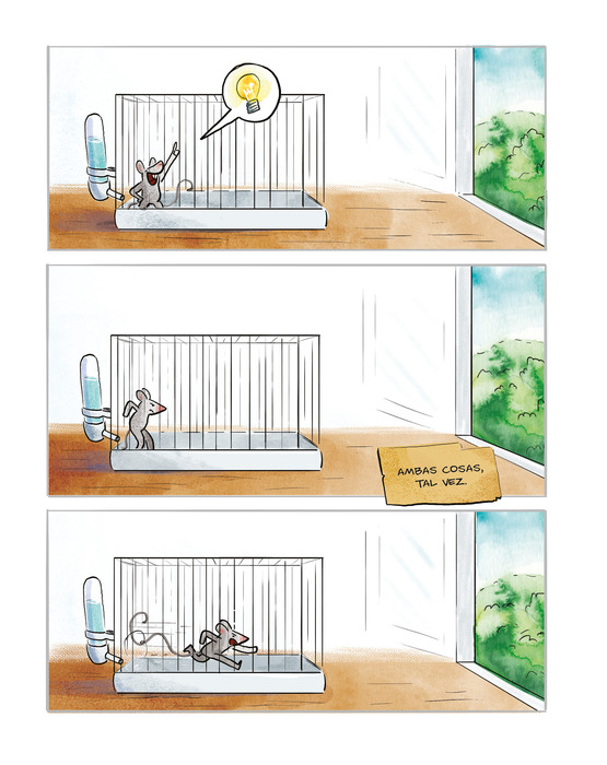 AtOLOnia confiesa que se inspira en “la estética y mundos de las fábulas clásicas, de los cómics e historias de aventuras y del humor más directo de los cómics de mi infancia, como los de Ibáñez. Una gran influencia también es el trabajo de Juanjo Guarnido. Lo tengo siempre en mi escritorio porque meterme a hacer acuarela en cómic a veces puede parecer un esfuerzo innecesario, pero miro su trabajo y me recuerda que merece la pena, salvando las distancias. También puedo citar a Jeff Smith (Bone), Bill Watterson (Calvin y Hobbes), Álvaro Ortiz, que me impresionó mucho con su uso del color en La pequeña genia, o Liniers y su dulzura cómica. ¡Y David Petersen! Creo que fue su Mouse Guard la que sembró la semillita de Pin, Pan y Pun”.