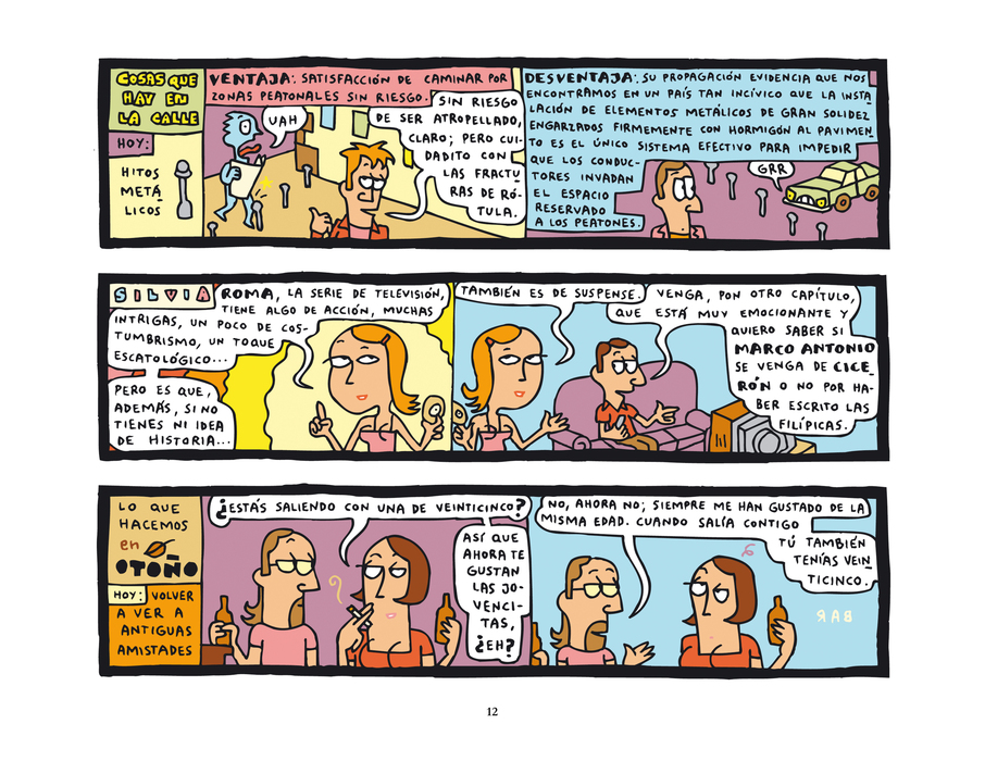 En Plétora de piñatas –constará de 3 volúmenes que recopilan la totalidad de las tiras publicadas en Público–, Entrialgo observa y disecciona lo que pasa en la calle, las discusiones de pareja, las palabras que están de moda, las mentiras comunes, y saca a base de palos lo desconcertantemente absurdo de las cosas más normales y cotidianas que nos rodean. Y es que ése es el sello de Mauro Entrialgo: fijarse siempre en la parte escondida de las cosas, ver la otra cara de la moneda, dar la vuelta a la tortilla, mirar hacia el otro lado.