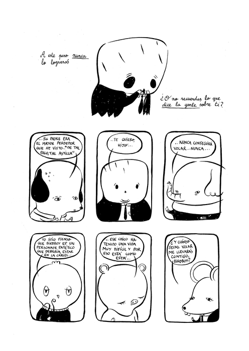 Psiconautas es una intensa historia definida por su notable carga poética y social. Entre toda una galería de seres antropomórficos, donde caben también relojes que cobran vida y patos hinchables parlantes, destacan dos jóvenes insatisfechos, Dinky y Birdboy, ratita y chico pájaro, que ansían, cada uno a su manera, huir de un entorno asfixiante, escapar de unas vidas opacas con un alto grado de alienación.