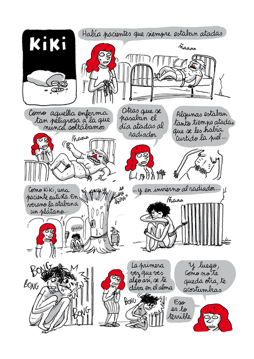 Lisa Mandel retrata la cruda realidad de los hospitales psiquiátricos de los años 60 en Francia, basándose en el testimonio de familiares y amigos enfermeros en aquella época: establecimientos insalubres, mezcla sin ton ni son de todo tipo de enfermos, tratamientos bárbaros…