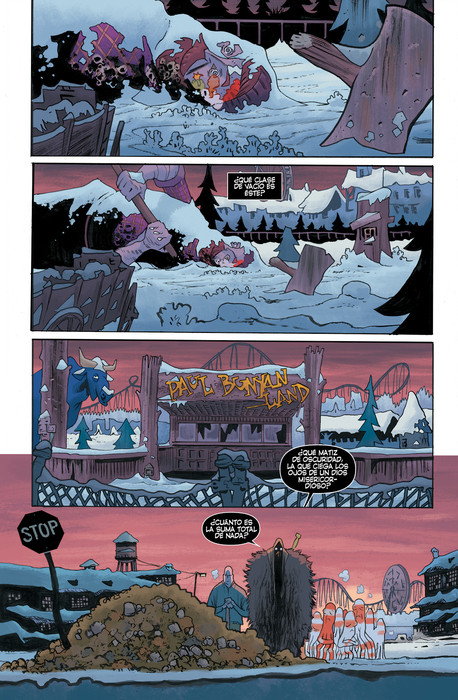Aunque Rumble 3. Cáscara inmortal mantiene su humor innato, este tercer acto supone una mayor profundización tanto en el carácter como en el origen de los personajes. La dicotomía entre bien y mal se diluye de la misma forma que lo hacen los bandos. Quizás no sea tan mala idea cambiar de principios si eso significa sobrevivir. Con este tercer volumen de Rumble concluye el primer arco argumental de la serie y la participación de James Harren, dibujante que dará relevo a David Rubín en el cuarto tomo previsto para el próximo mes de agosto.