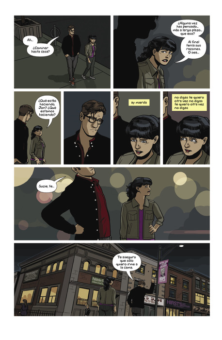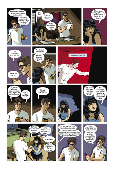 En este cuarto volumen de Sex Criminals, Matt Fraction profundiza en las inseguridades de Jon, que chocan frontalmente con las aspiraciones laborales de Suzie. Mientras la relación de los protagonistas se mueve en las farragosas arenas de la normalidad y la sombra de la incertidumbre se cierne sobre ellos, la doctora Kincaid se ve obligada a enfrentarse a su pasado. Y aunque conoceremos a un nuevo personaje con la capacidad de parar el tiempo, si hay alguien que destaca por encima de todos en esta nueva entrega es Myrtle Spurge, también conocida como Carakegel, cabecilla de la Policía del Sexo. Por fin sabremos qué le impulsa a comportarse así, cuál es su modus operandi y, sobre todo, nos plantaremos ante el dilema de si es ella la verdadera villana o no.