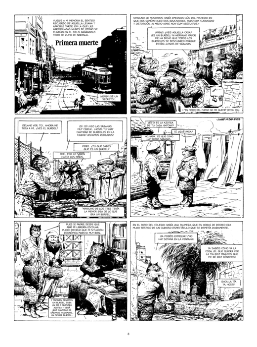 Siete vidas, del versátil autor catalán Josep Maria Beà, se recupera en formato álbum treinta y cuatro años después de que comenzara a publicarse por entregas en la revista Rambla. Esta serie de historietas con protagonista gatuno –recopiladas en un tomo por Intermagen en 1985– se revela como el más íntimo diario en viñetas del maestro Beà.