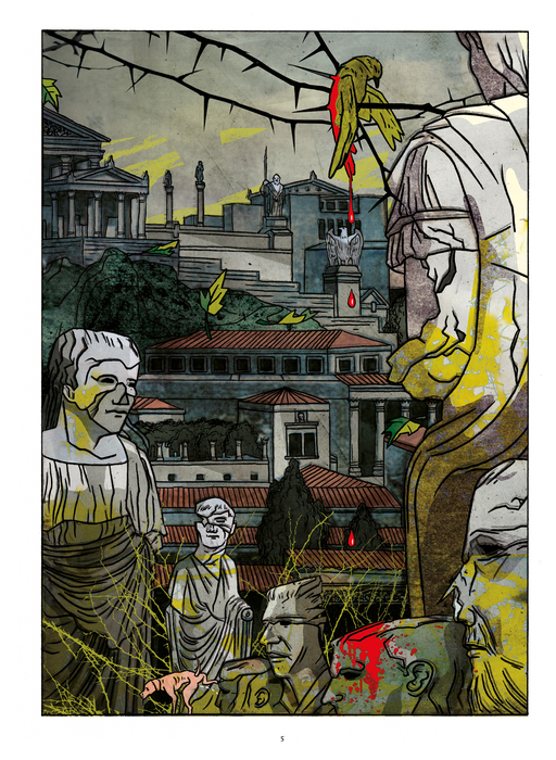 Esta versión en viñetas de la pieza de teatro isabelino intitulada Tito Andrónico da cuenta, a través del arte de Marcos Prior y Gustavo Rico, del tránsito del emperador-por-herencia al emperador-por-aclamación-cuasi-popular. Entrelazado todo ello mediante una espiral de violencia provocada por una serie de acciones y reacciones con el denominador común de la venganza (alimentada por el fuego del mal por amor al mal), que se van turnando hasta el paroxismo final con el que culminan no pocas de las obras atribuidas a la figura central del problemático canon occidental: William Shakespeare.