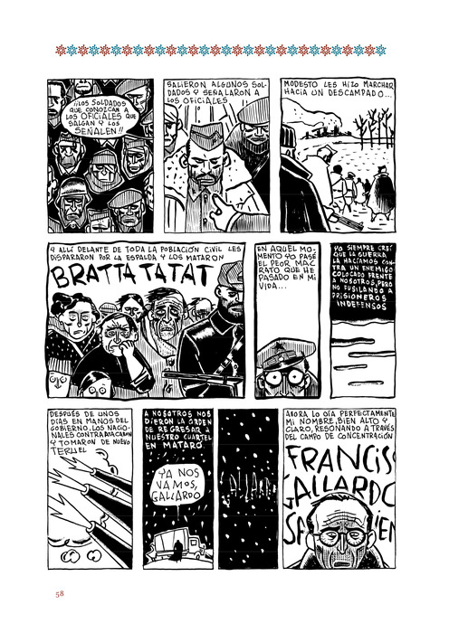 A Francisco Gallardo le tocó vivir la guerra civil –apunta en el prólogo– “en el bando de los que nunca habían tenido, ni tenían nada”, es decir, en el bando de los que la perdieron. Tras 40 años sin decir una palabra más alta que la otra, rompió su silencio y su hijo, el dibujante Miguel Gallardo, levantó acta y complementó el texto con ilustraciones, páginas de cómic, fotografías y documentos de la época; un proceso que le llevó diez años completar y que ahora amplía en esta nueva edición que presenta un formato mayor con ocho páginas más y pasa a tener tres colores frente al bitono original.