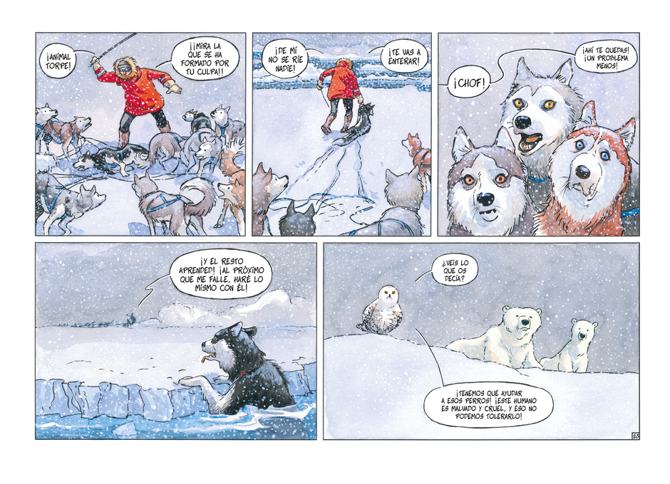 Además, “la fantasía más desbocada se une a los datos más precisos sobre el comportamiento de las diferentes especies de animales –añade Alzate–, y Emilio consigue en su narración que ambos enfoques sean perfectamente diferenciables, pero que, sin embargo, se mezclen en un armonioso conjunto de asombrosa lucidez naturalista y etológica. El cariño, la sed de aprender y la libertad destilan por los gélidos poros de esta aventura ártica, repleta de un humor inteligente e irónico”, asegura sobre esta serie, que tiene sus primeros tomos en Wáluk (Astiberri, 2011) y Wáluk 2. La gran travesía (Astiberri, 2017).